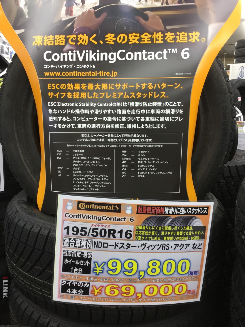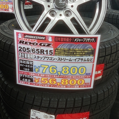 タイヤ単品 ¥69,000 (税別 工賃、バルブ交換、タイヤ処分料込み)