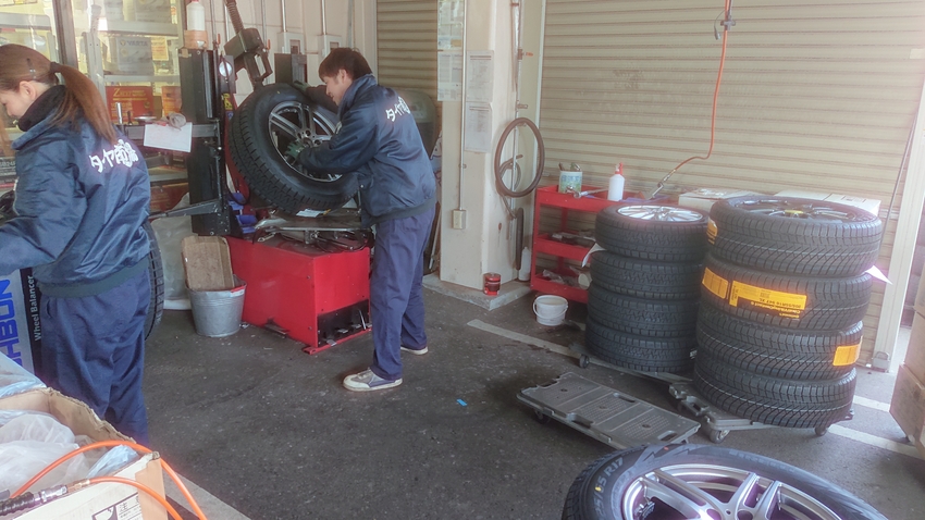 今日も元気にタイヤを組んでます!スタッドレスタイヤ!