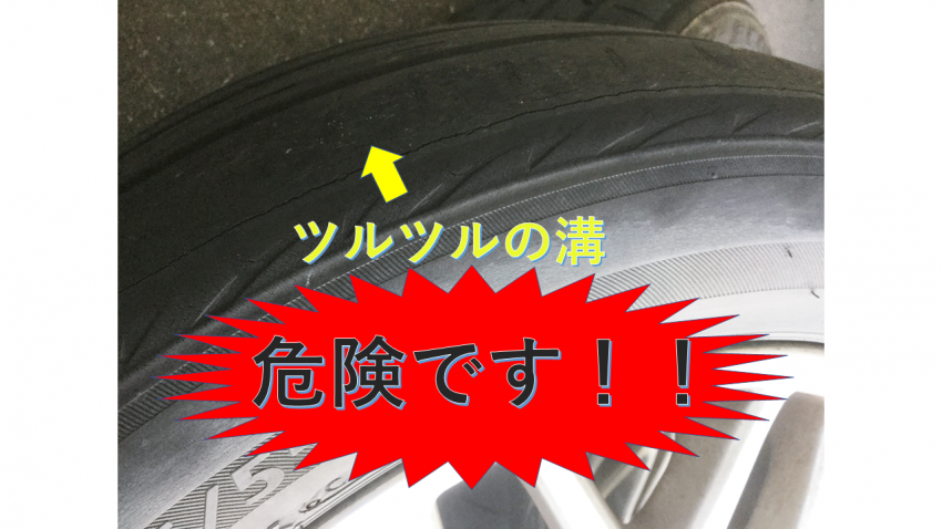 上の写真のようにタイヤの溝がない状態で急ブレーキなどしてしまうとスリップしてしまいそれが事故の原因などにもなってしまいます