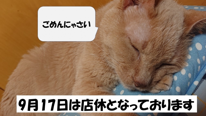 9月18日水曜日は朝10:00時より元気に営業いたします。
