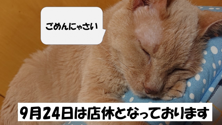 9月25日水曜日は朝10:00時より元気に営業いたします。