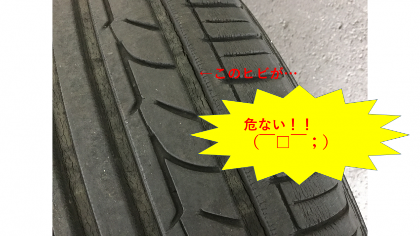 このヒビはタイヤのゴムが硬くなり起こる現象でして...