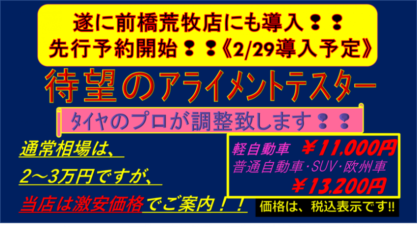 以上!荒牧店吉田よりアライメントの告知でした!( ̄^ ̄)ゞ