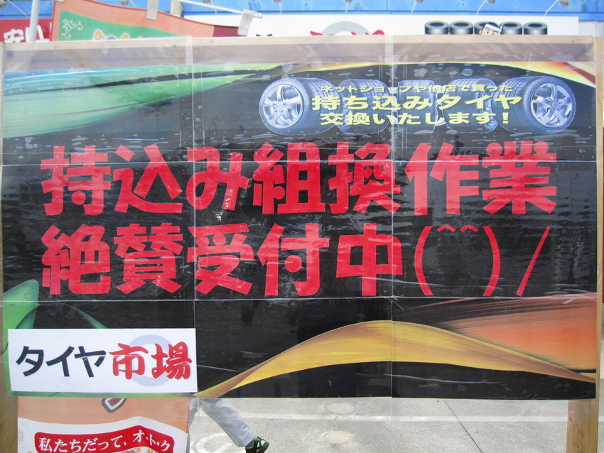 タイヤ市場では、他のタイヤ販売店では殆んど受付けて貰えないネット購入商品や