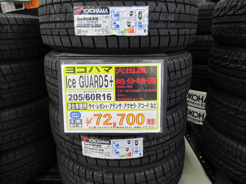 現状店舗在庫と致しましては、ヨコハマタイヤのアイスガード5プラスとブリヂストンのVRXを