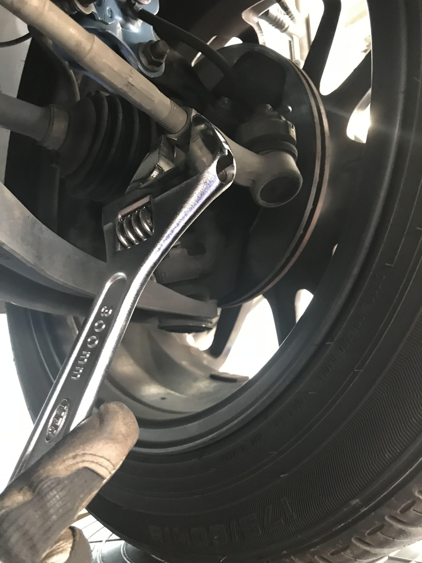 タイヤを真っ直ぐに調整を行い、これでタイヤの外減りも完璧に改善!!