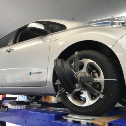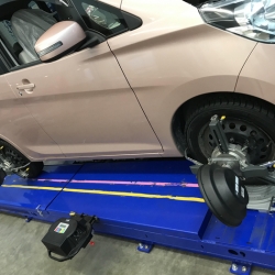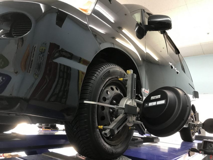 また、現在装着されているタイヤが大きく片べりしてしまっていた為、メンテナンスとしてアライメント調整も同時に行わせて頂いております。