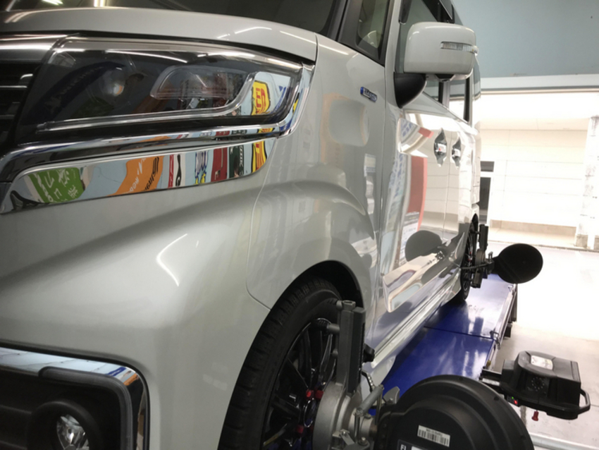 本日は走行距離約1,000kmのスペーシアカスタムのアライメント調整を行いましたのご紹介します♪