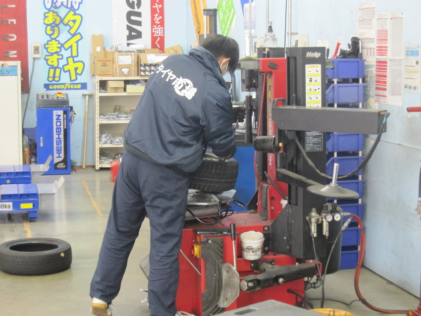 駒形店新入スタッフのタイヤ組込練習始まっております(>_<)