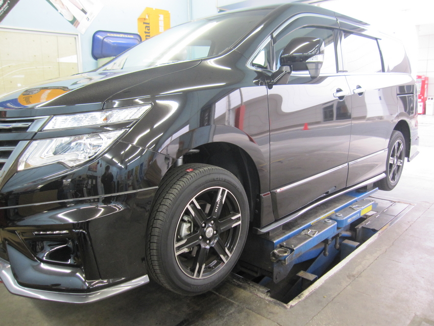 本日は、NISMO仕様のエルグランドのスタッドレス交換