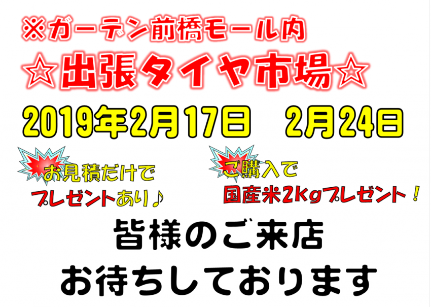 明日2月24日開催!!!出張タイヤ市場inガーデン前橋モール内(^^♪