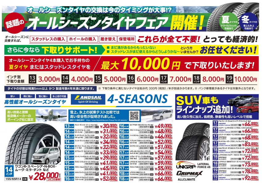 春のタイヤ・ホイールびっくり市(前橋駒形店・高崎倉賀野店・前橋荒牧店・伊勢崎宮子店 )