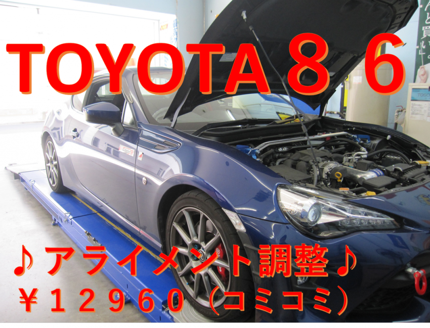 トヨタ86 アライメント調整(^v^)ブレーキキャリパーブレンボ仕様