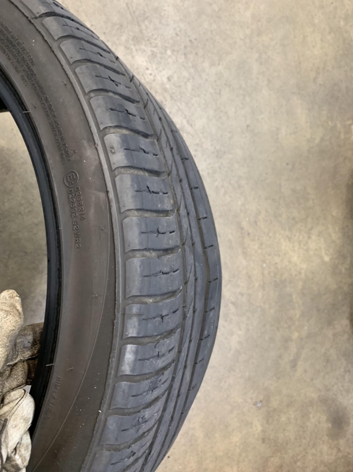 こうなる原因には、タイヤへの大きな衝撃であったりタイヤ空気圧が不足(タイヤ負荷能力が足りない)など、もしかすると足回り部品に原因があるのかもしれません。。。
