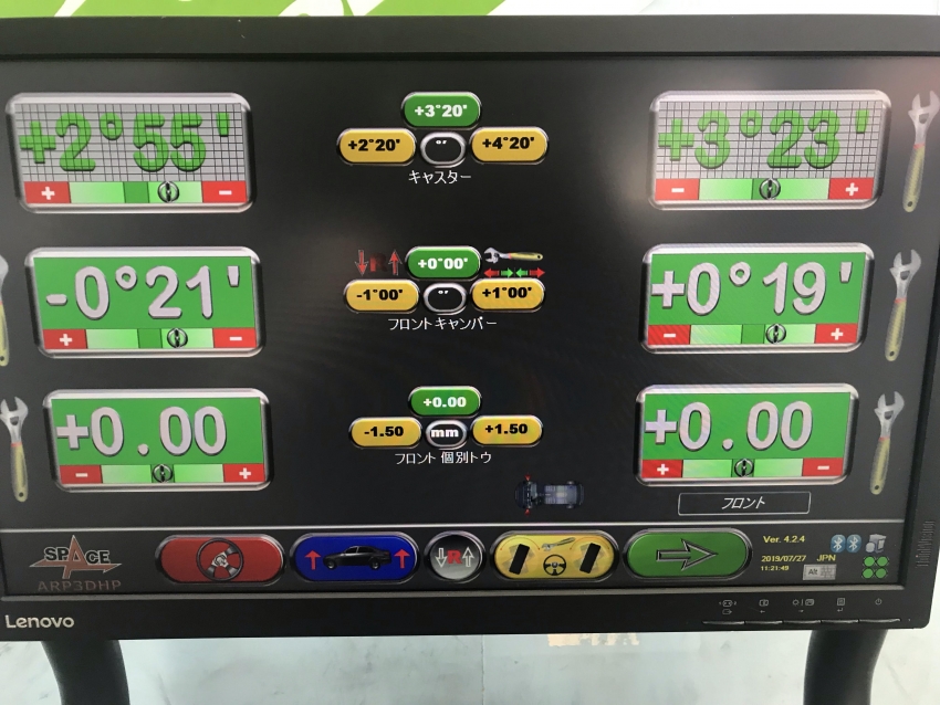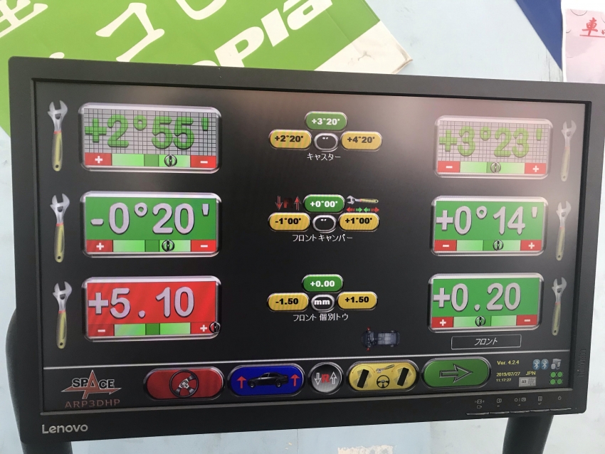 ト―角の左右差が大きかった事で、ハンドルのセンターズレが有りましたが修正後は位置も綺麗にする事が出来ました。