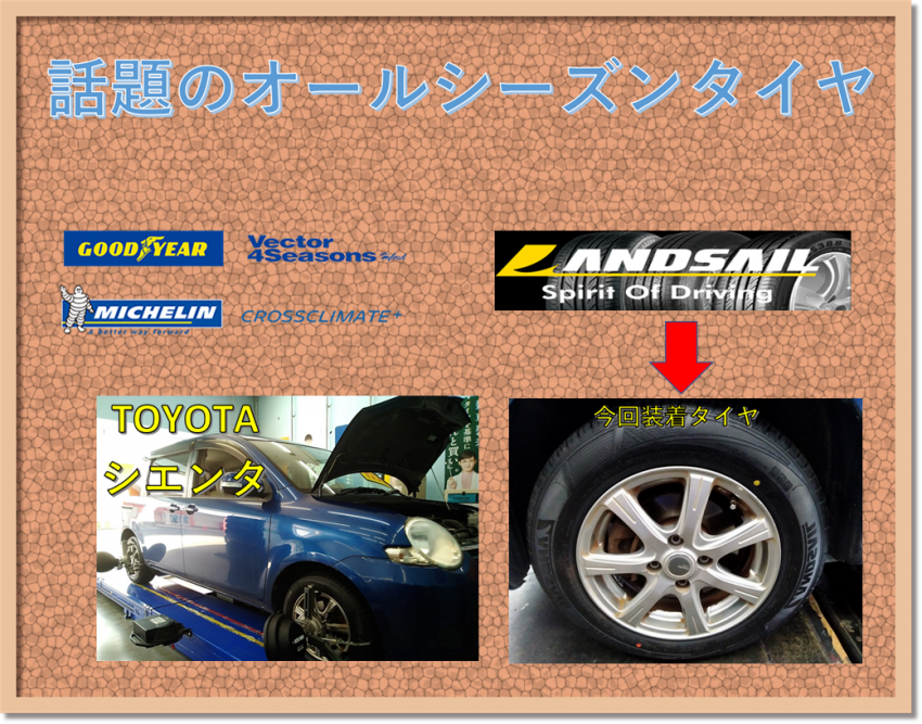 オールシーズンタイヤ×アライメント調整・・トヨタシエンタ