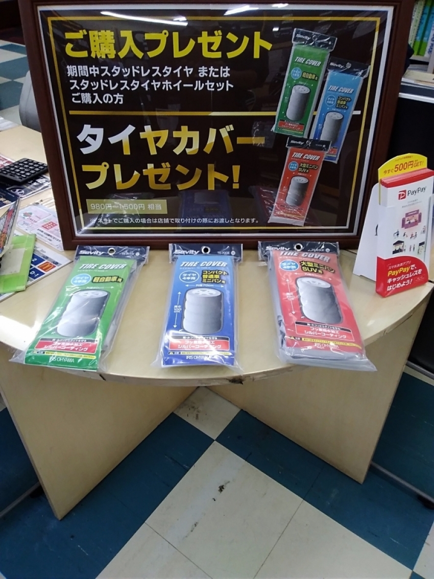 IMG_20191018_124230.jpgIMG_20191018_124236.jpg更に、今スタッドレスタイヤを御購入頂いたお客様には先に写真をあげているタイヤカバーをプレゼント致します(๑✧∀✧๑)