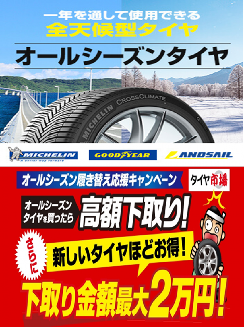 - タイヤ市場でオールシーズンタイヤを購入、交換の方に限ります。