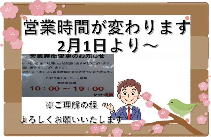 2月より営業時間が変更いたします。