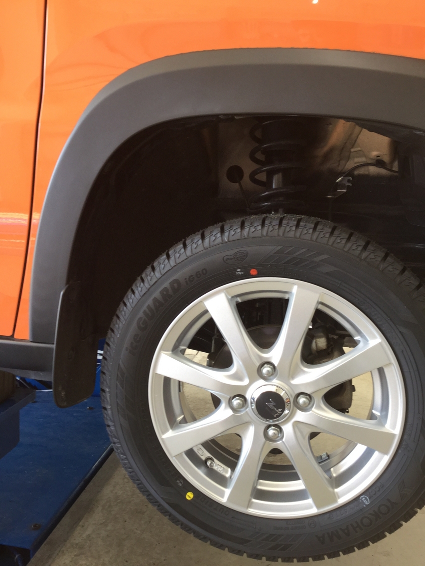 本日はハスラーのオーナー様にスタッドレスタイヤのホイールセットを