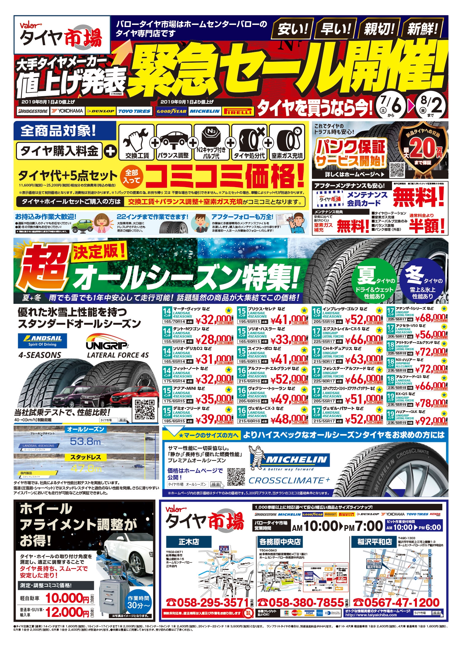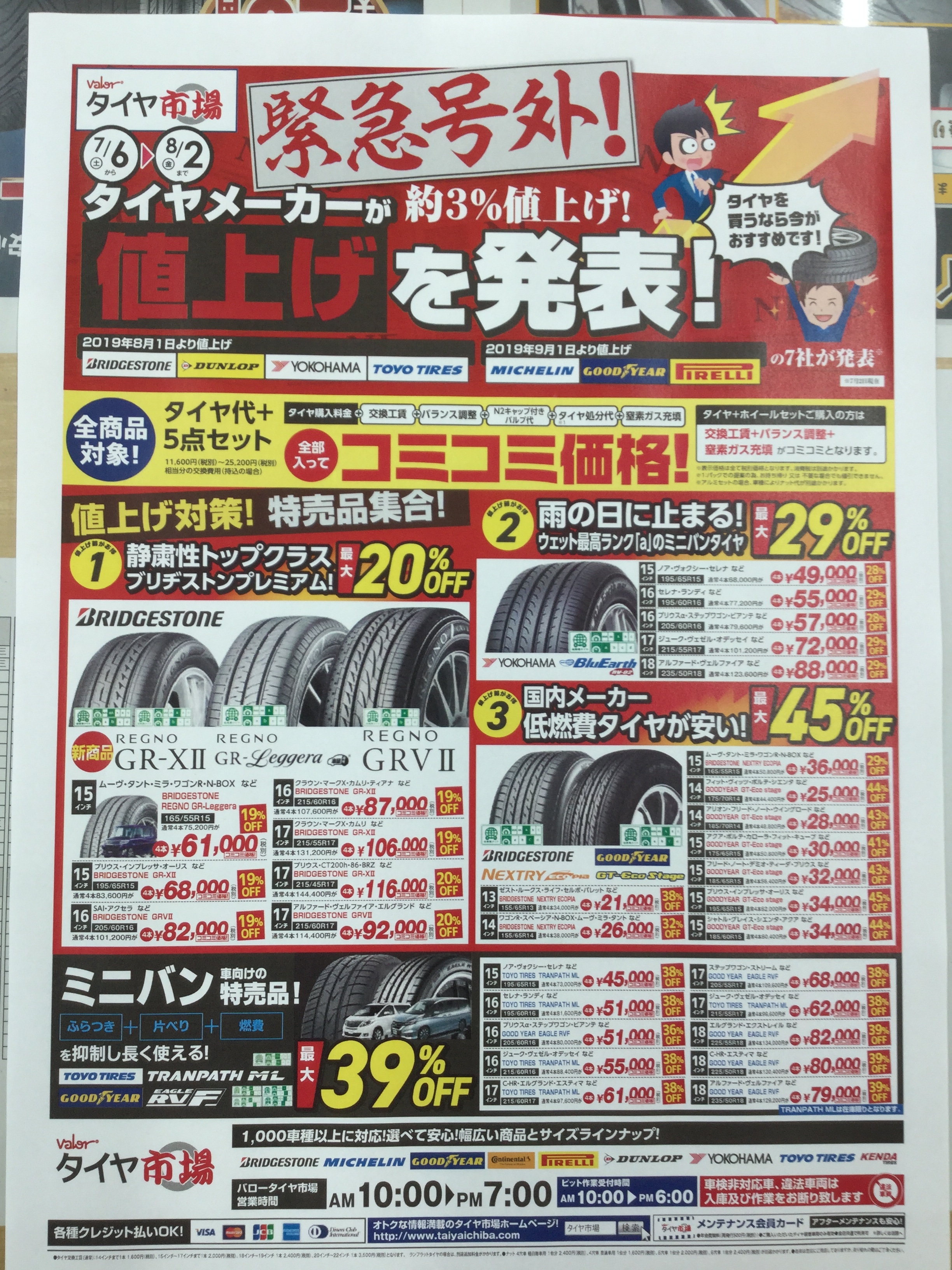 『大手タイヤメーカー値上げ発表!緊急セル!!』