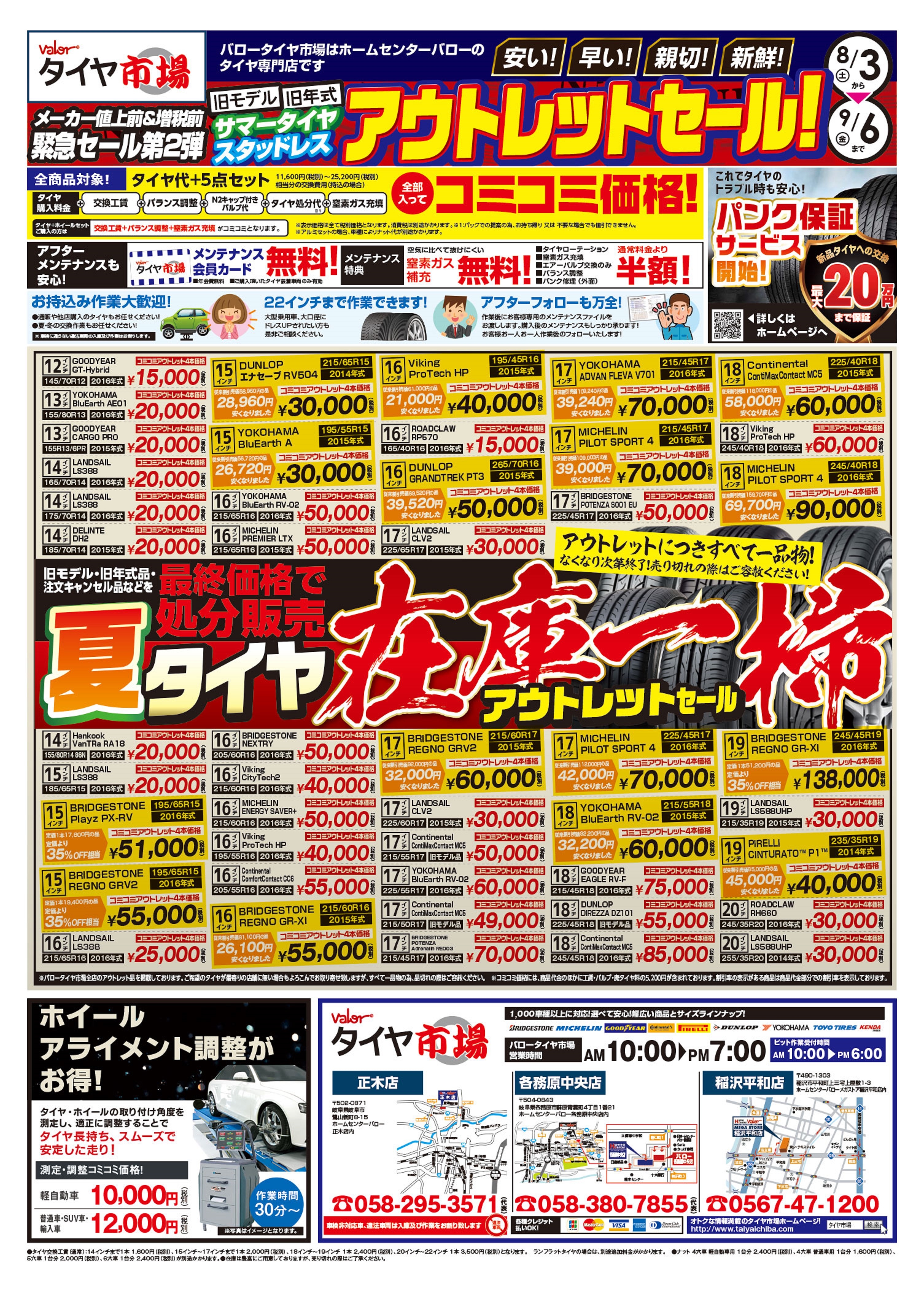 旧モデルや旧年式のサマータイヤをすべて1品物になりますがお買い得なアウトレット価格での在庫一掃セールになります!