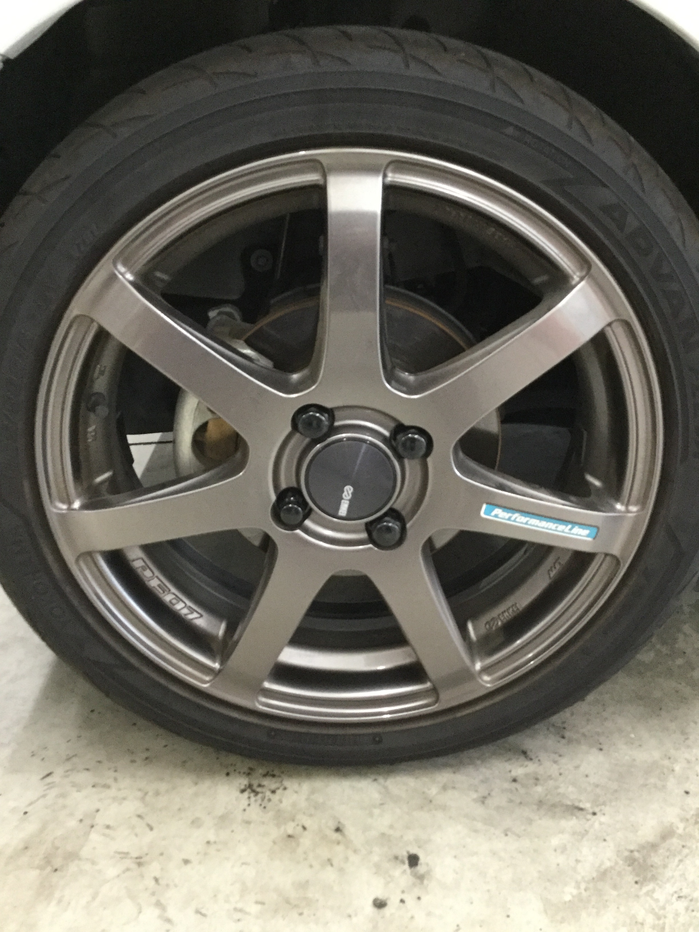 さて、こちらのお客様はホイールも最近、エンケイのPF07に変更されてハブリングを装着される為に、ご来店いただきました。
