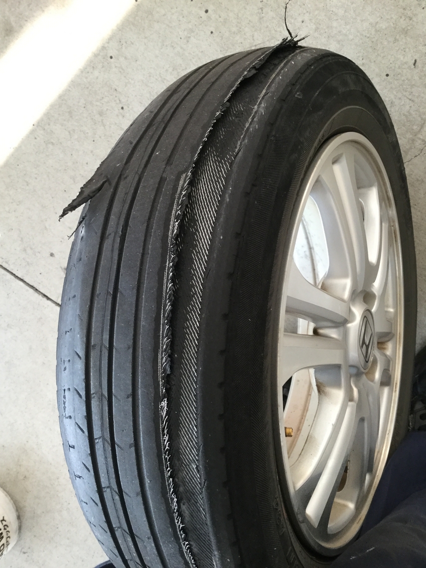 ワイヤーまで出ているタイヤを交換させて頂きました。