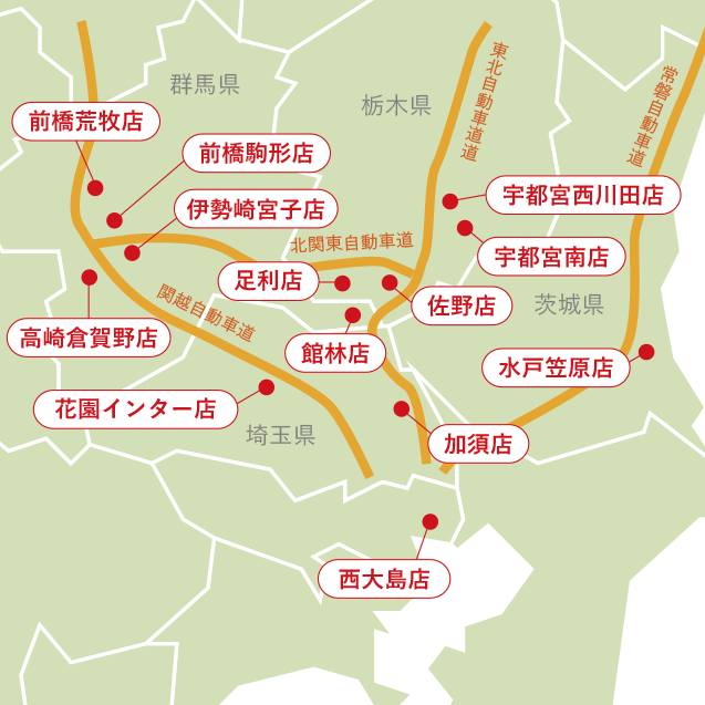 関東のタイヤ市場の店の場所になります。
