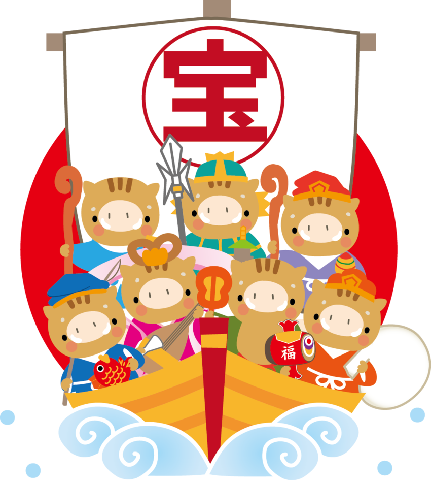 「七福神」が境内で舞を奉納後、街中を練り歩いて福を広めて参るとのこと。
