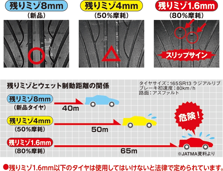 ましてや、溝の減ったタイヤをそのままで走行していますと、いざっ!!と云う時に、ブレーキ制御がままならない場合があります!! <(_ _)>