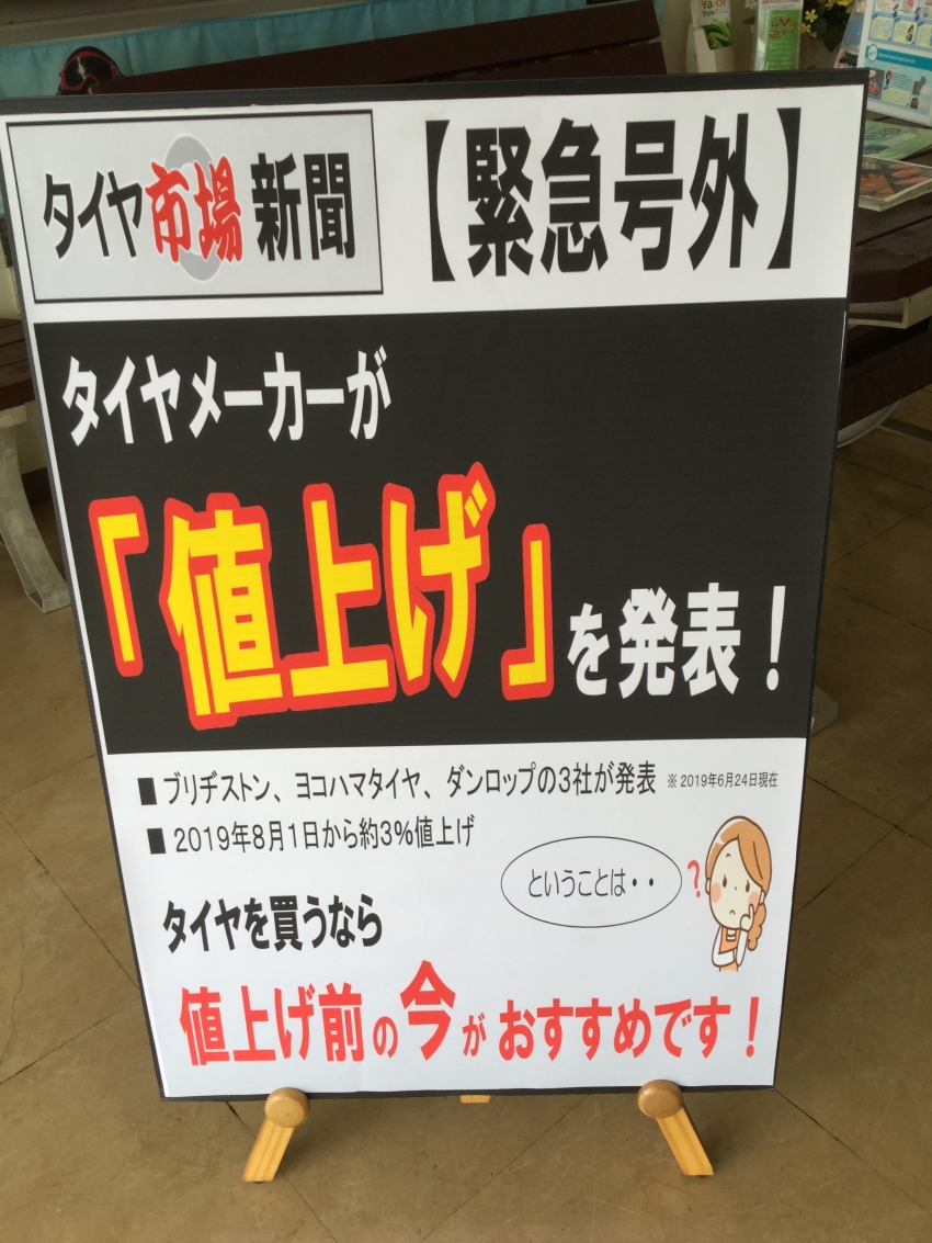 タイヤ市場の他の店舗でご紹介している店舗もございますが、8月からタイヤメーカーさんが次々と値上げを発表!