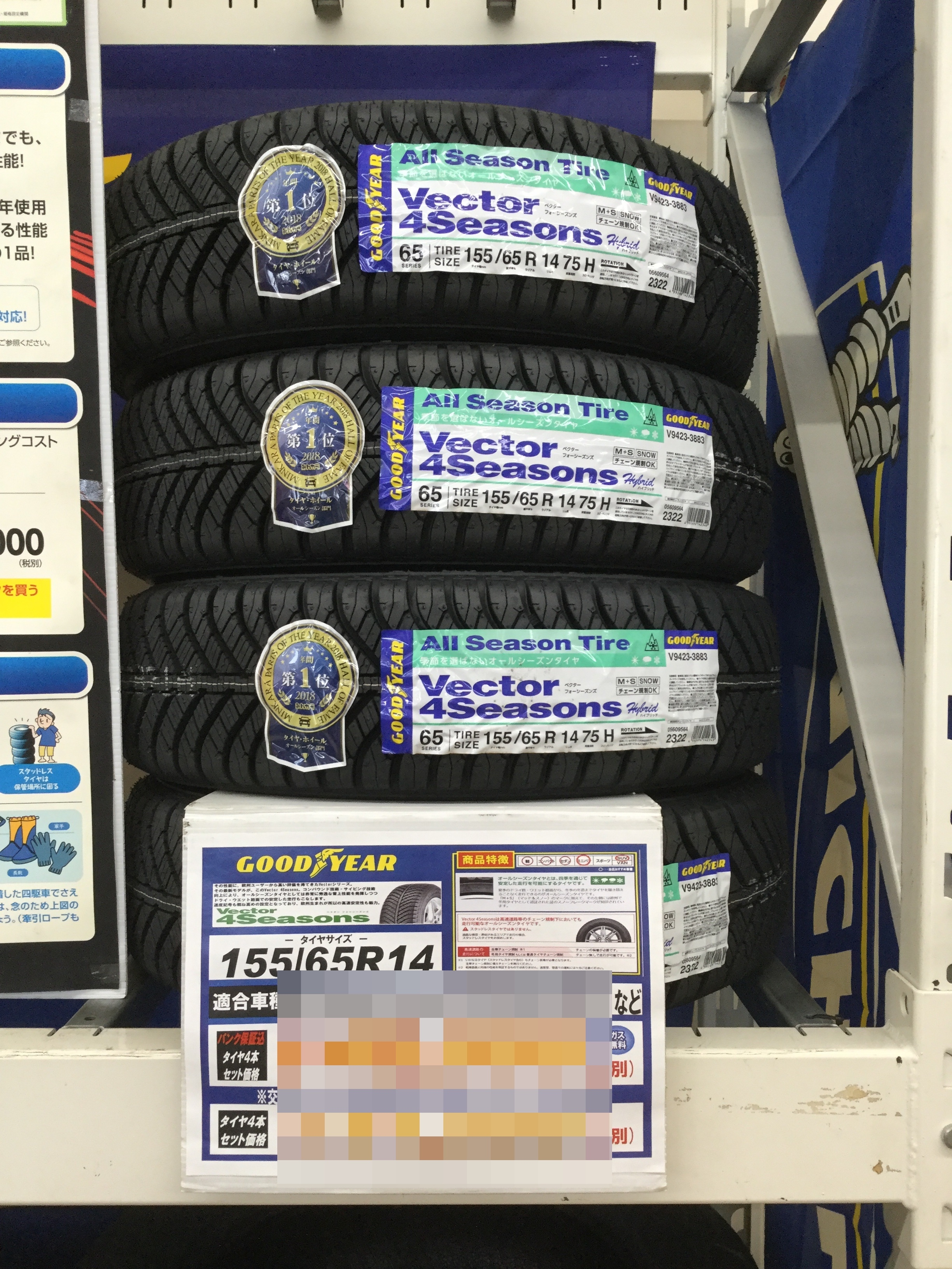 写真は、軽自動車ですが、オールシーズンタイヤも沢山ございます!