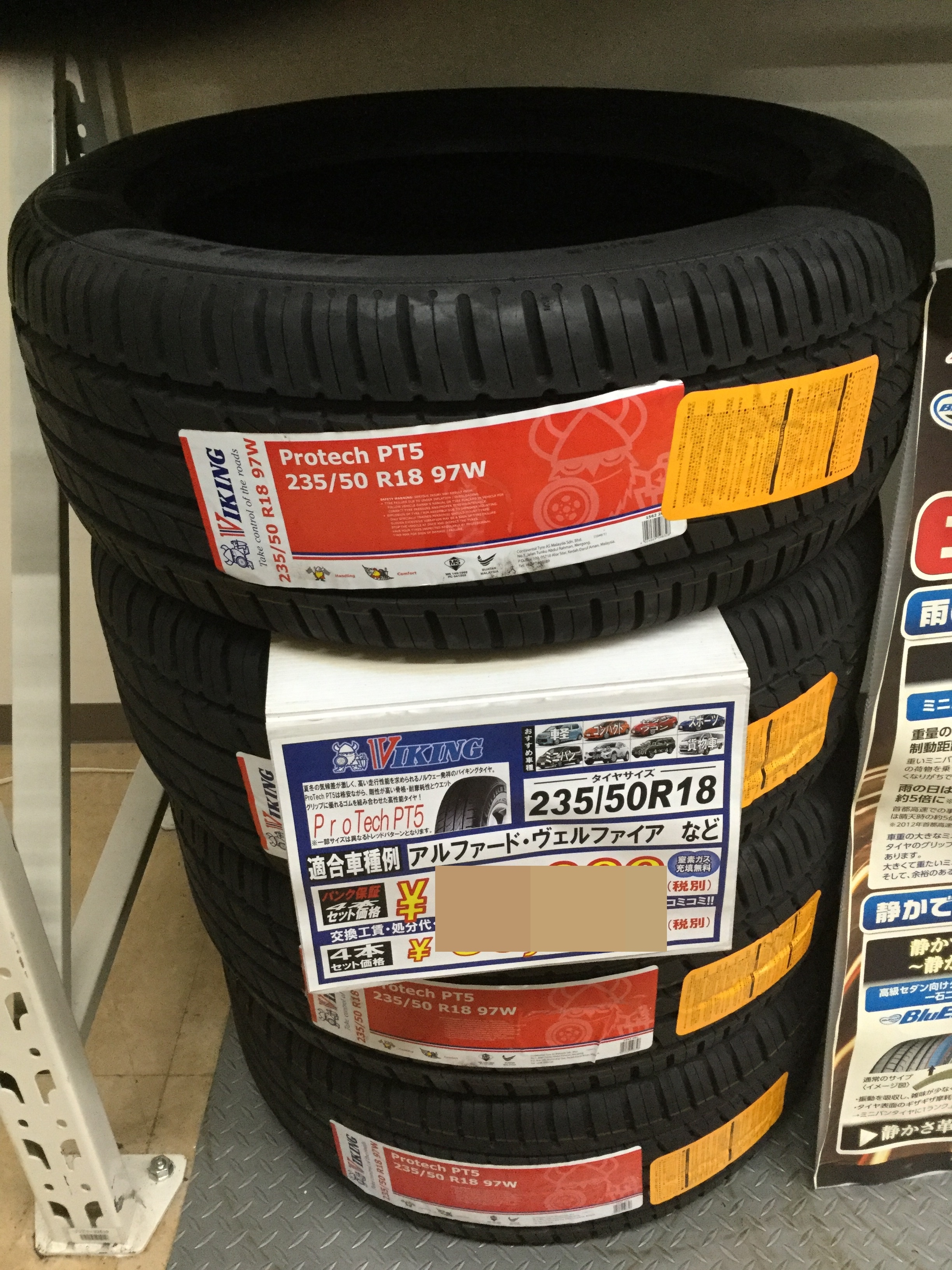 20190702001.JPG写真のは、アルファードなどの高級ミニバンサイズですが、非常に、ウエット面で強く、安定感のあるバイキングタイヤです。金額も非常にお安く、ミニバンタイヤにしては、懐をいためる心配の無いタイヤとなっております。