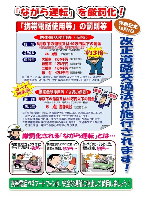 「ながら運転」の厳罰化が強化されたのであります!! ((+_+))