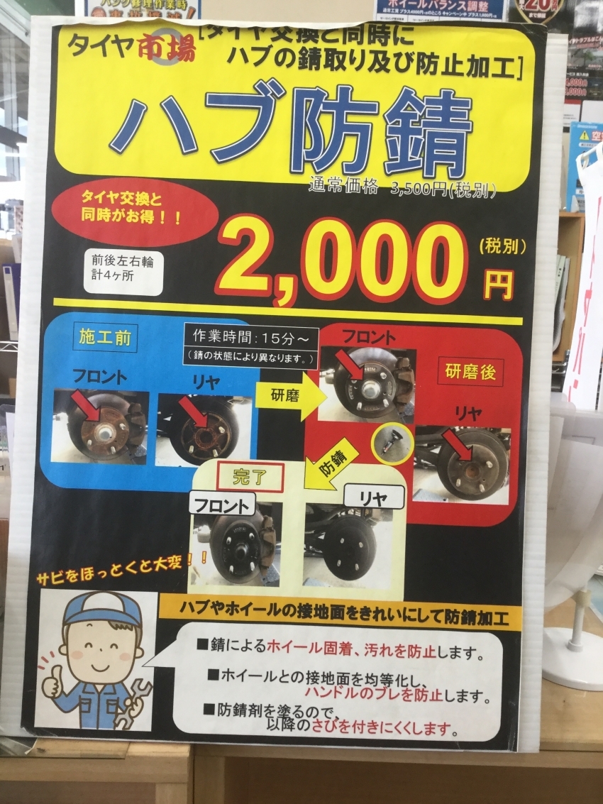 1."錆"によるホイール部の固着や汚れを防止!!致します。