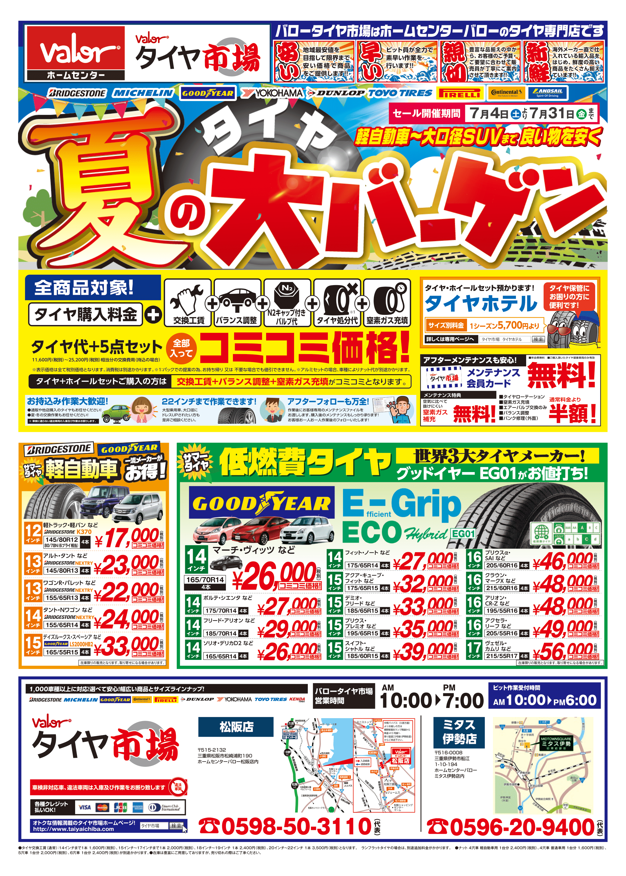 7月です!!! (*^^)v 『タイヤ・夏の"大バーゲン"』 はじまりました~~ \(^o^)/