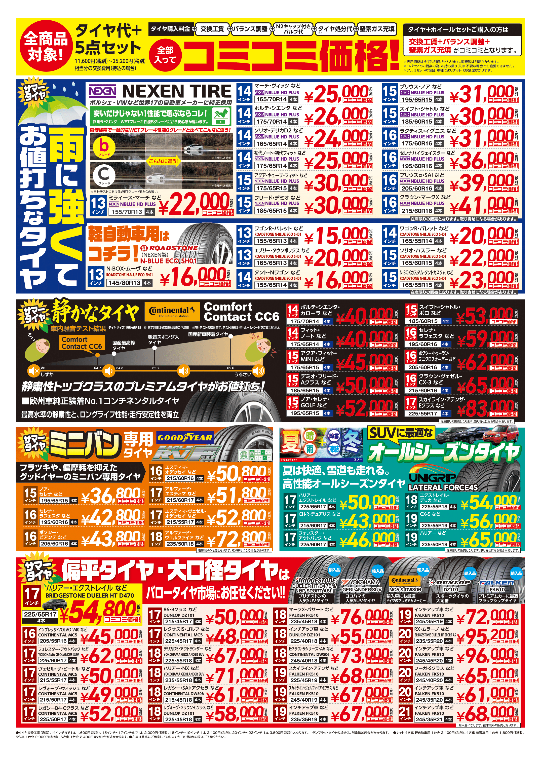 軽自動車から大口径のSUV車対応の夏タイヤを