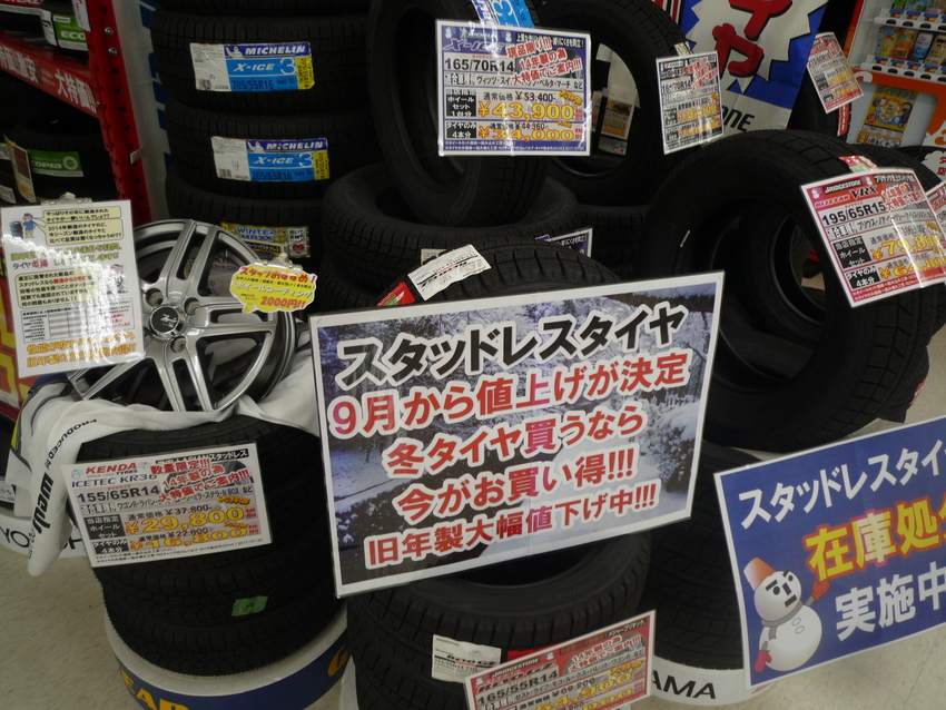 9月からスタッドレスタイヤの値上げが決定・・・