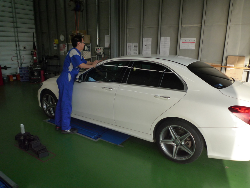 本日は、以前タイヤをご購入頂いたMercedes-Benz C200のお客様にメンテナンスでご来店頂きました。
