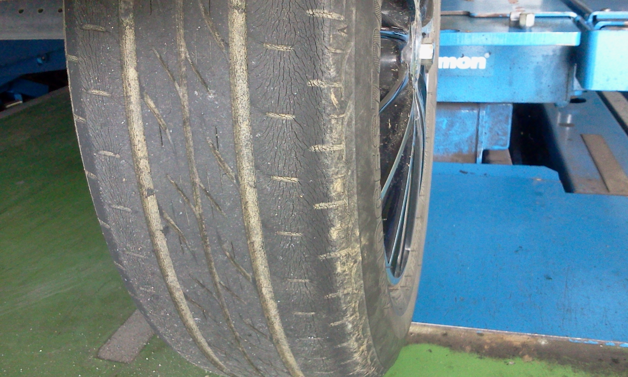 「お客様のお車にタイヤはまっすぐ回転していません」