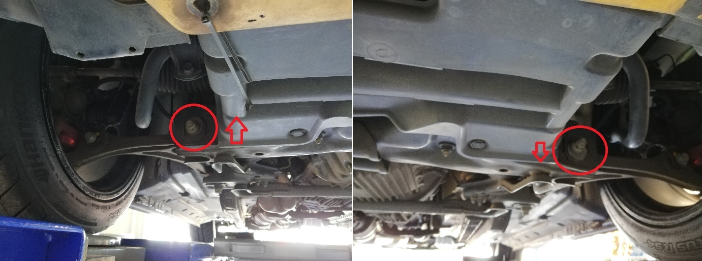 その前に、キャンバーのカムが左右で上下逆さまなのを発見したので直します。