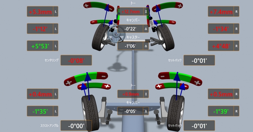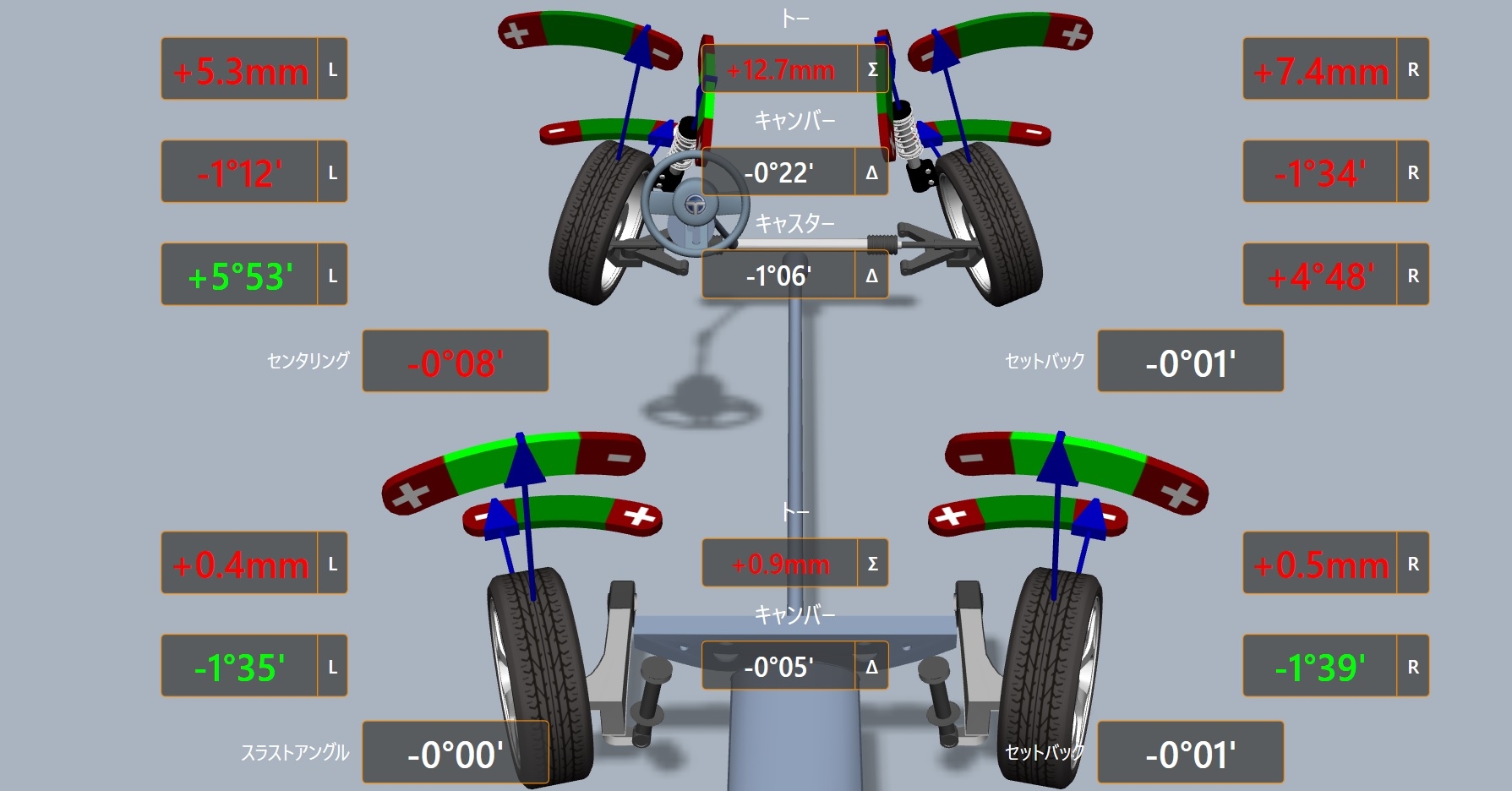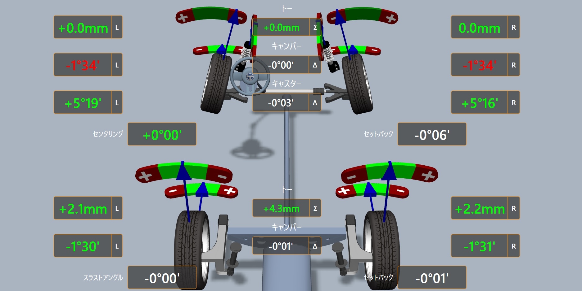 キャンバーを前後同じにということでご要望通りの数値になりました。