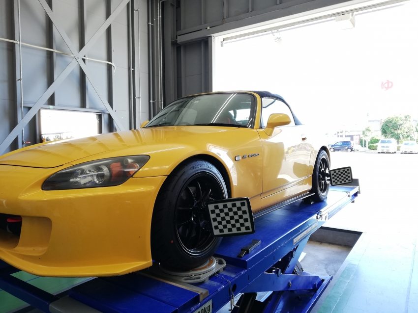 S2000は前後のトー、キャンバーそしてキャスターのフル調整が可能なので頑張って調整を開始します!