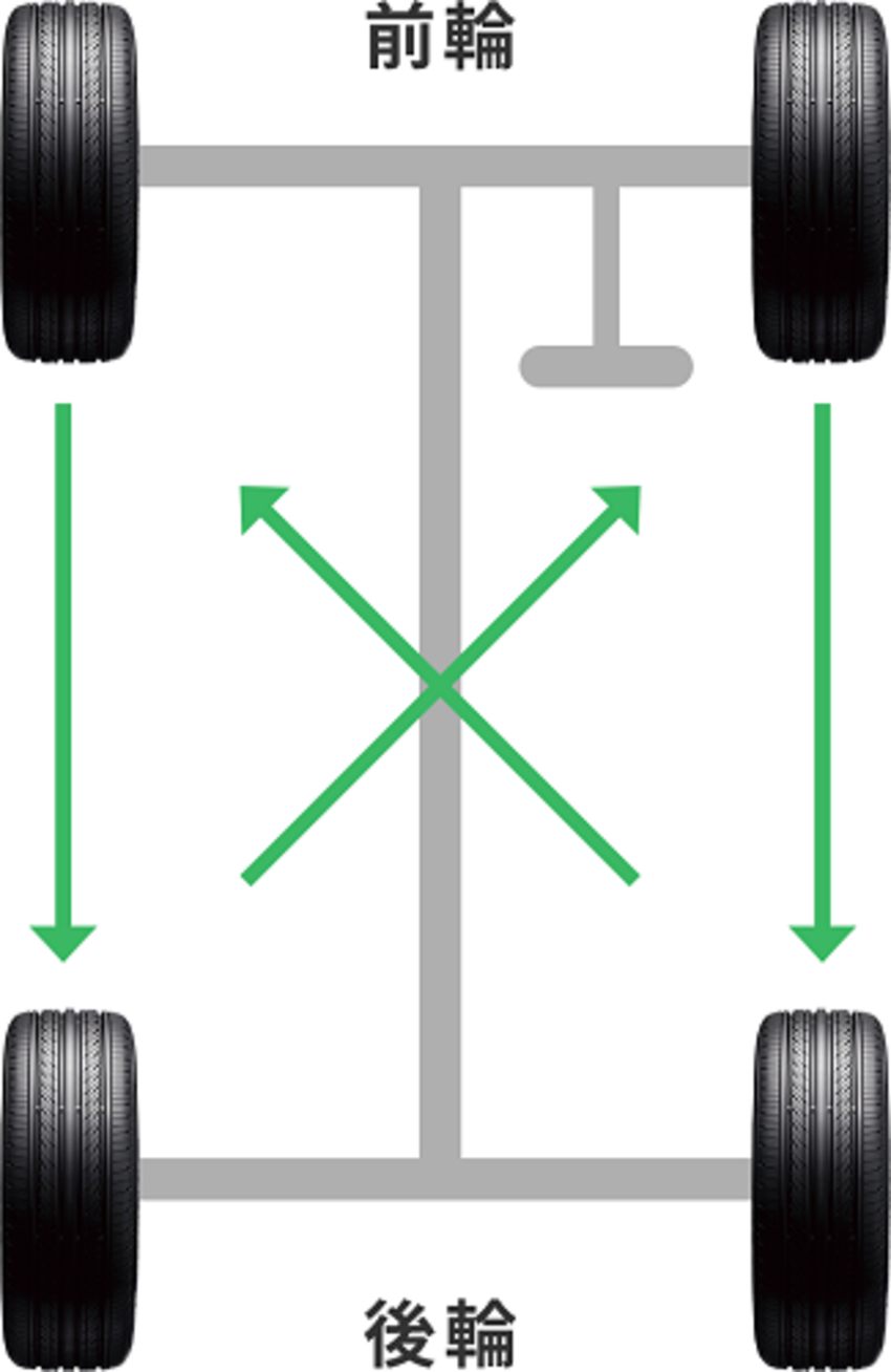 タイヤは実は前後で減り方に差があります。タイヤを均等に使い切る為にも