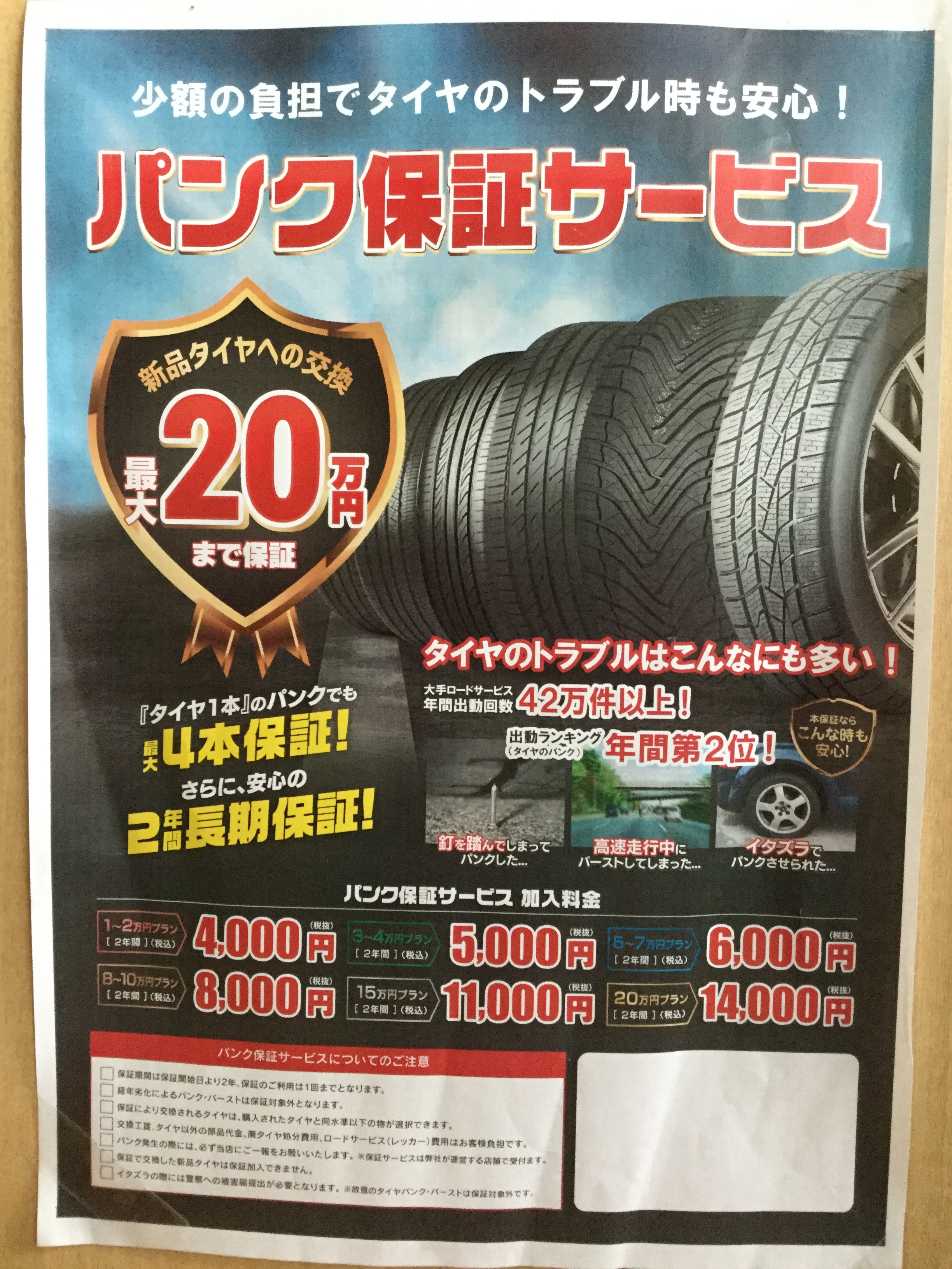 パンク保証はタイヤ購入作業時にしか加入できませんのでご注意ください!!