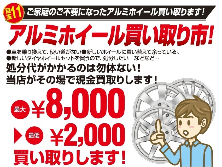 アルミホイールのみの買い取となりますので、ご注意ください。