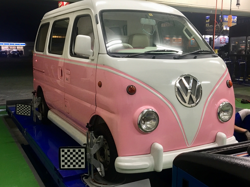 ワーゲンバス仕様のエヴリィにて、タイヤ4本交換後