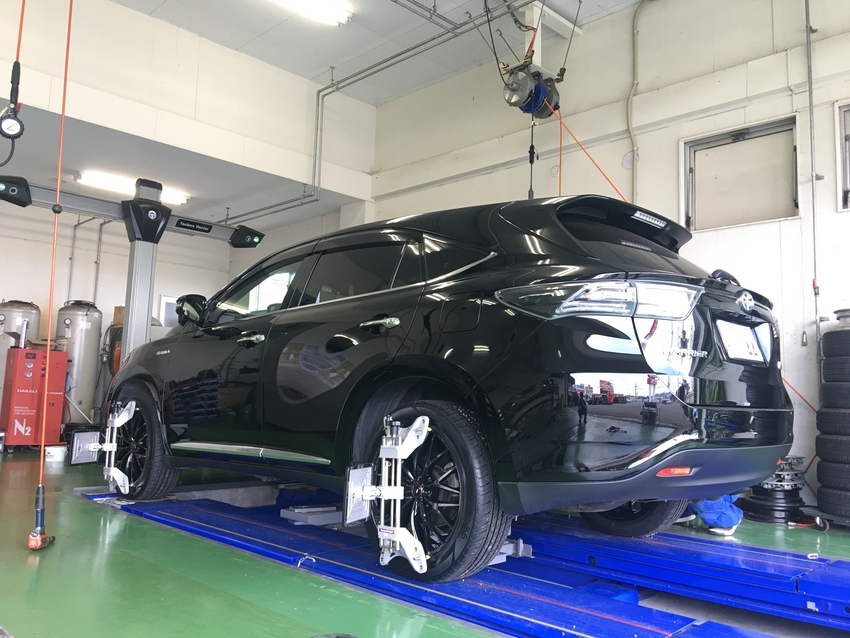 現行ハリアーにてホイールセットご購入頂き、アライメント作業も行いました!!