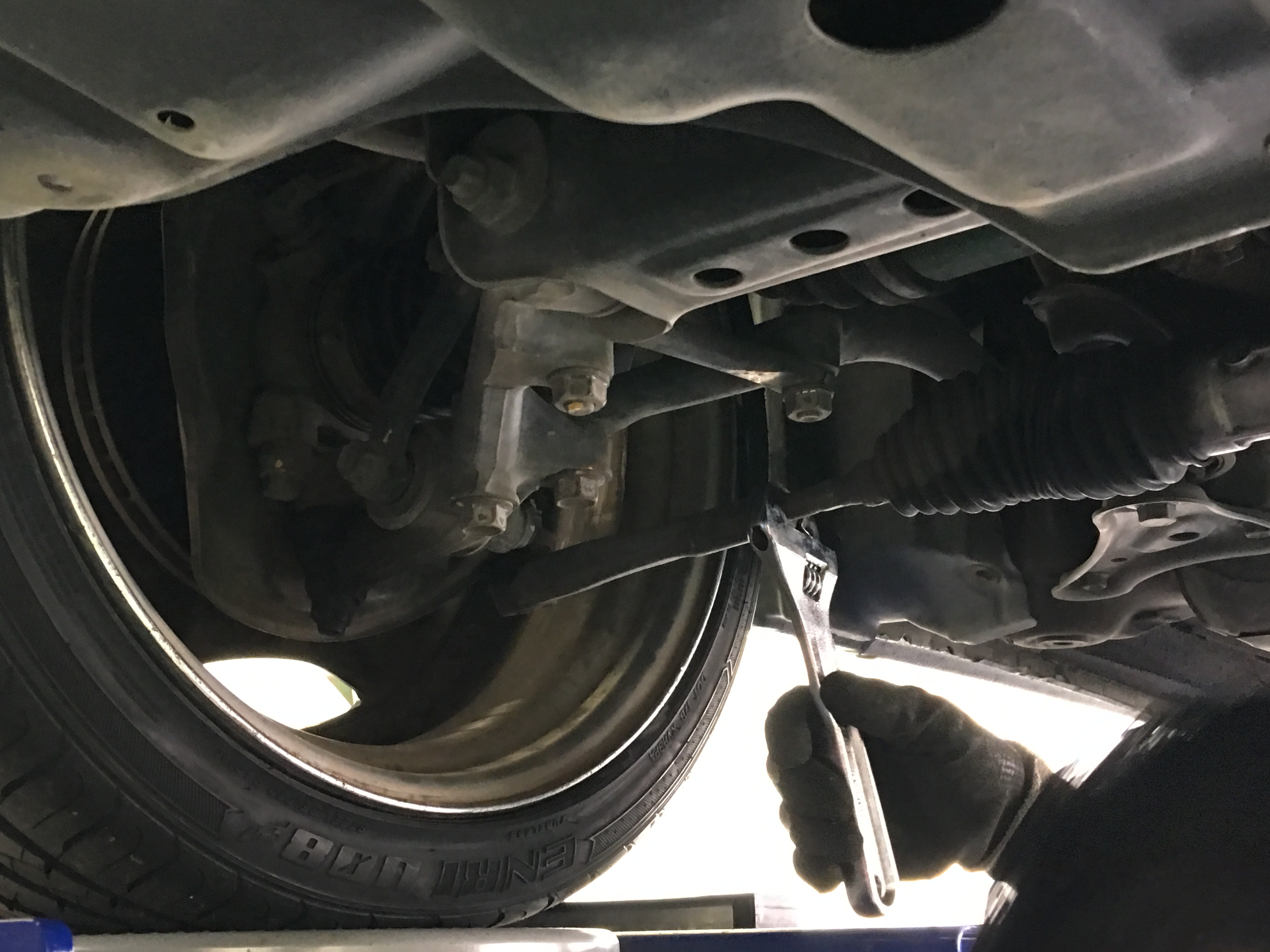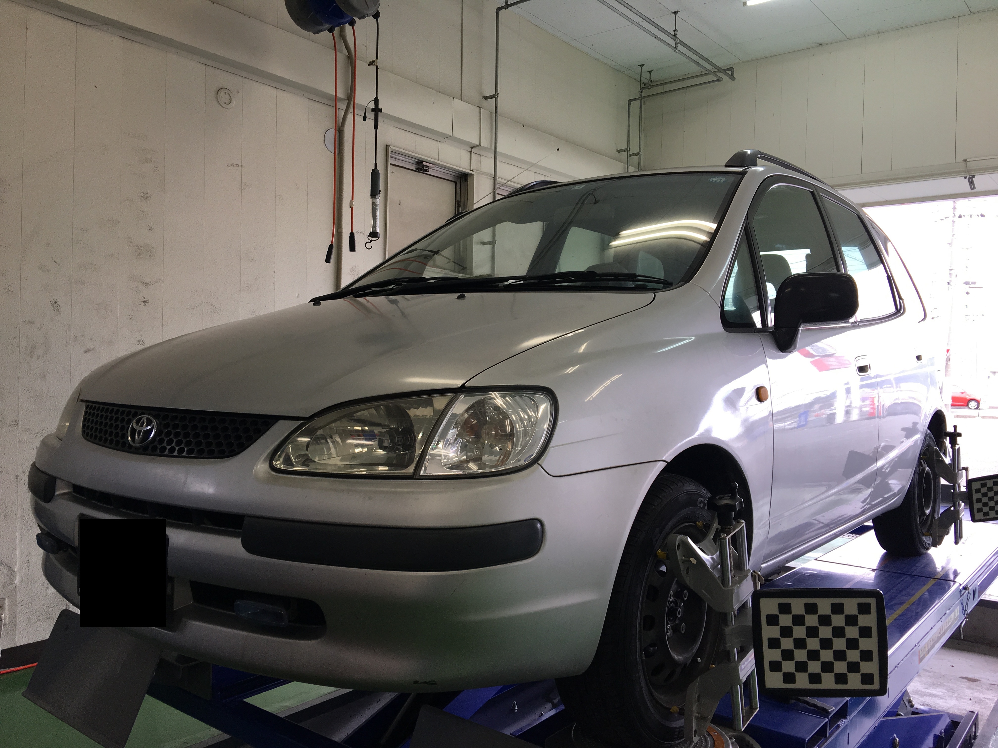 本日作業して頂いた中で、カローラスパシオ4本全体的に右に傾いていました(*_*;